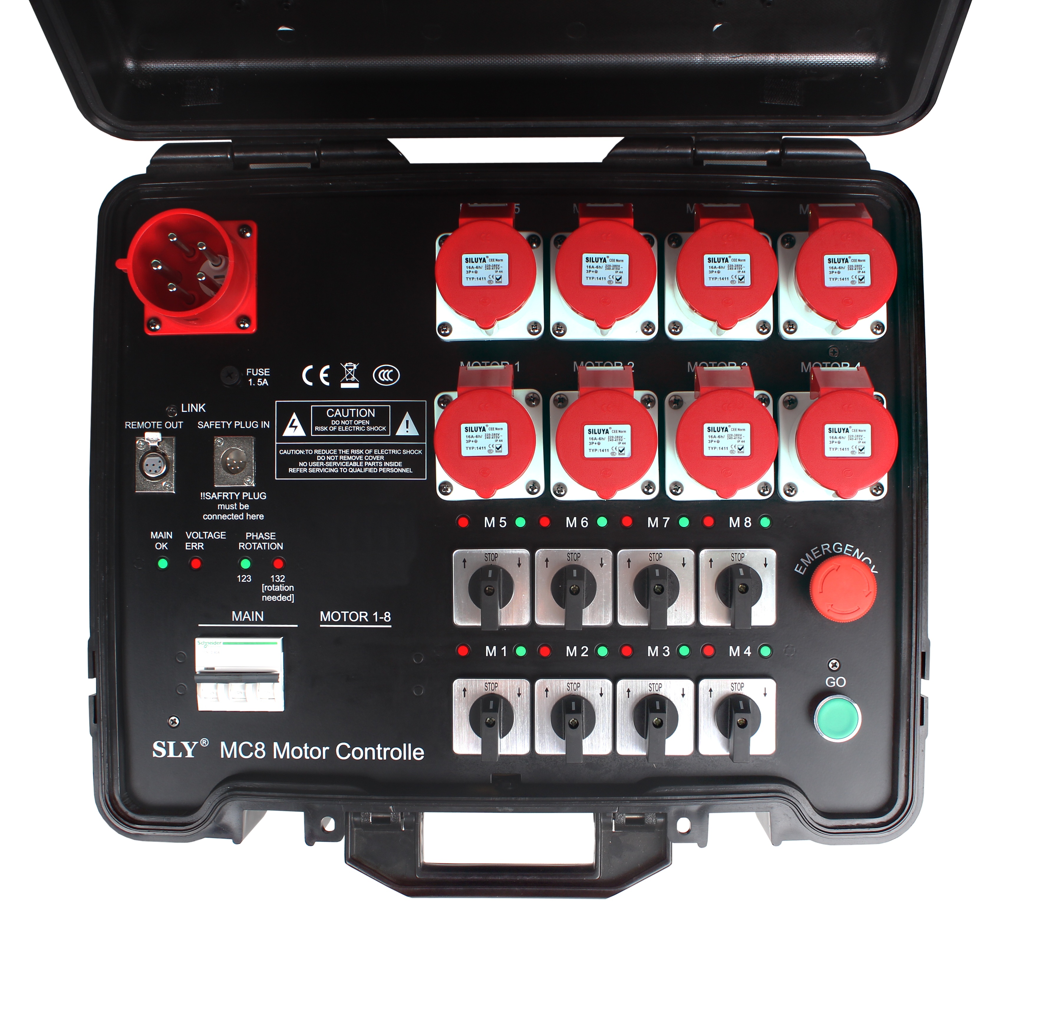 MC8 电动葫芦控制器是一个便携式的控制器,安装在可靠的塑料器材箱内,方便流动演出需求;高品质的开关和连接器提供可靠的操作保障。